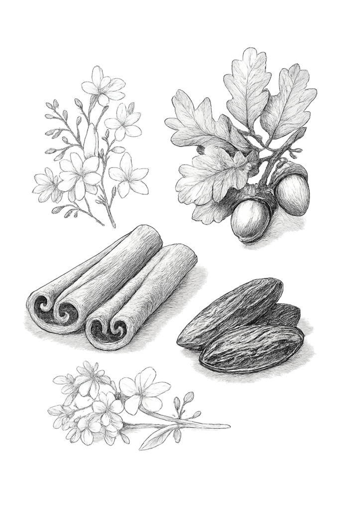 قرفة، حبّة التونكا، خشب البلوط، هيديون